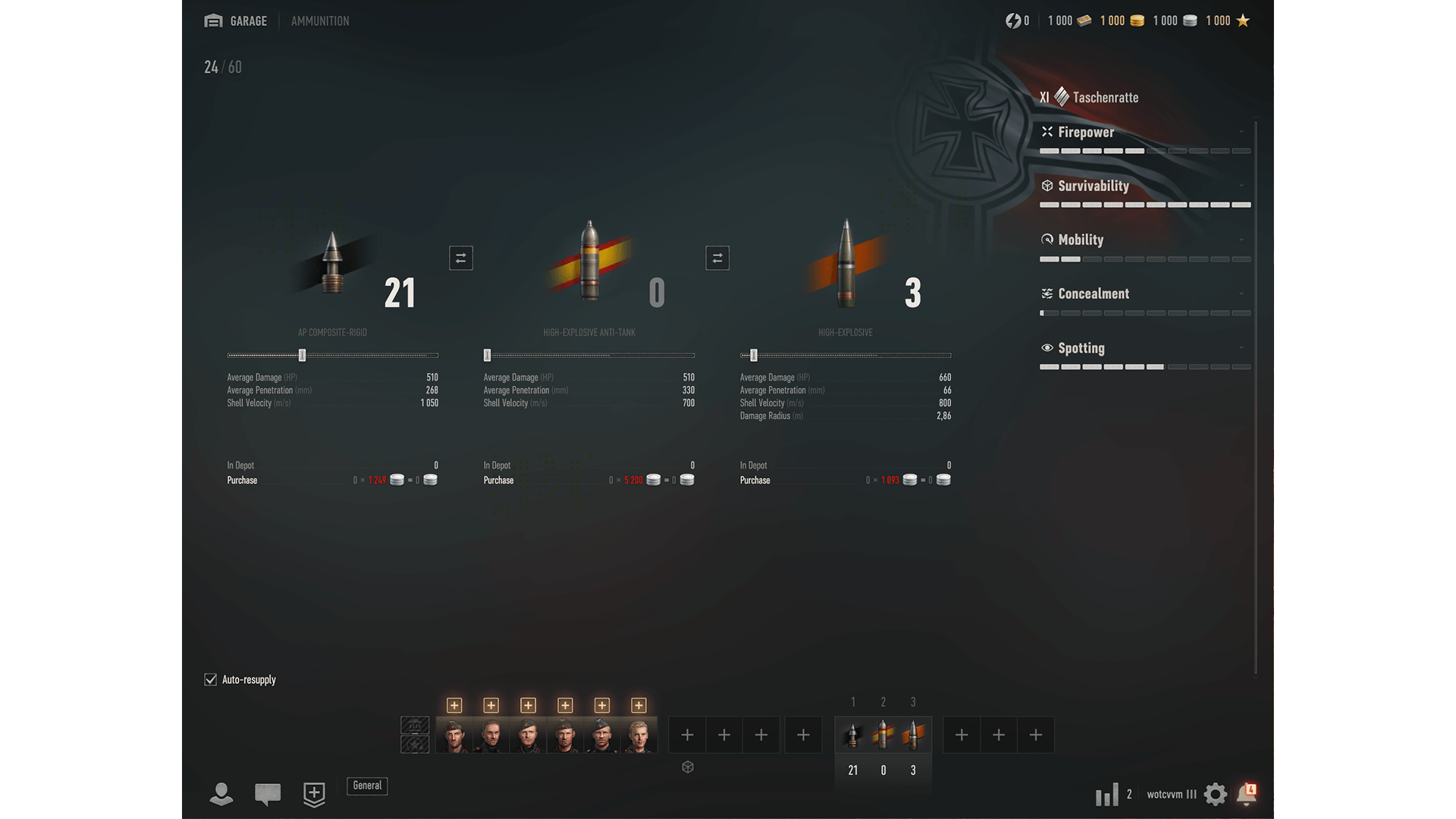 The revamped ammunition screen gives you a more expansive look at the full loadout of your vehicle, crew included.