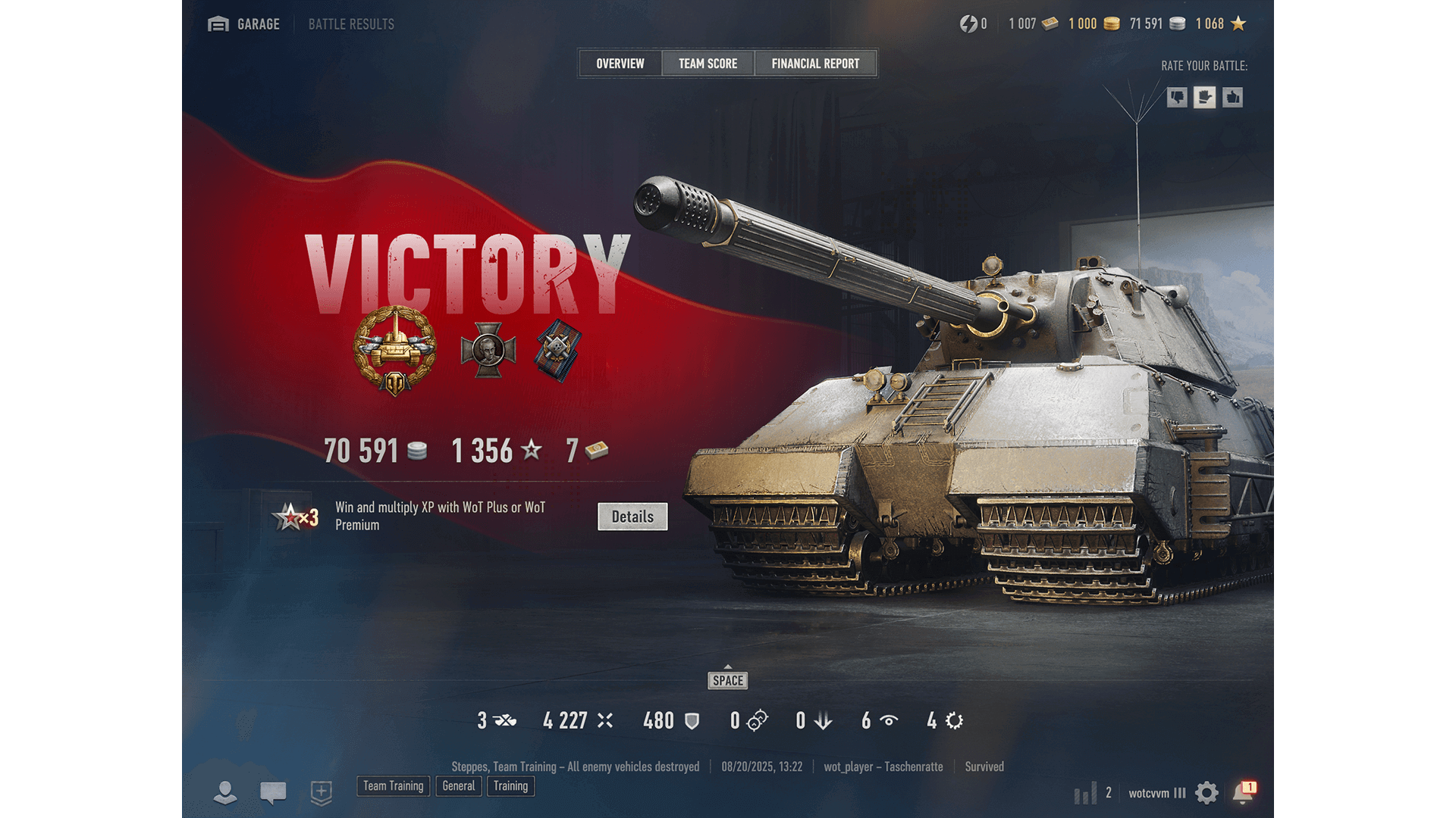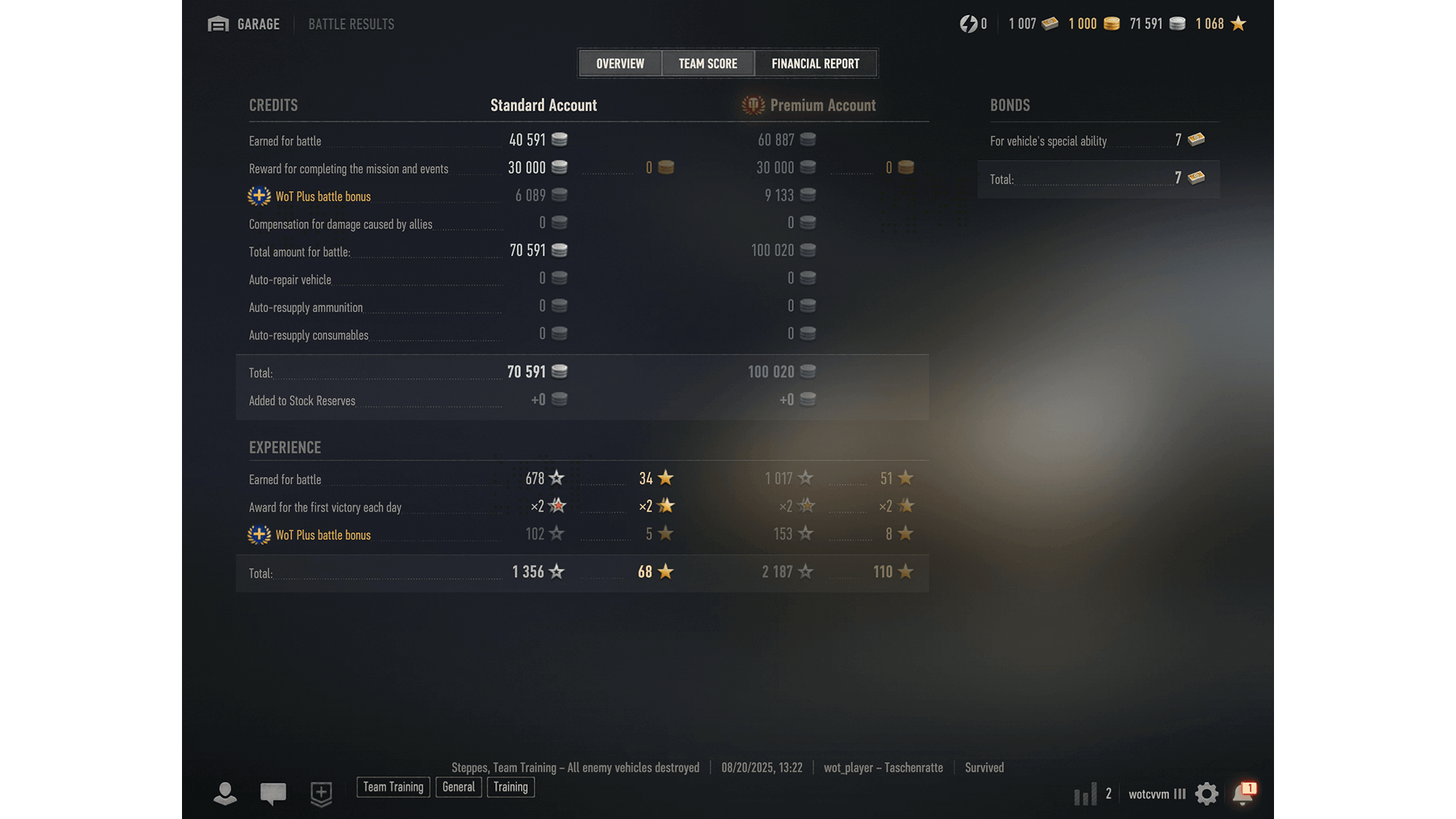 See all the details about your account—including WoT Plus subscription status, Premium Account status, and Premium Shop access.
