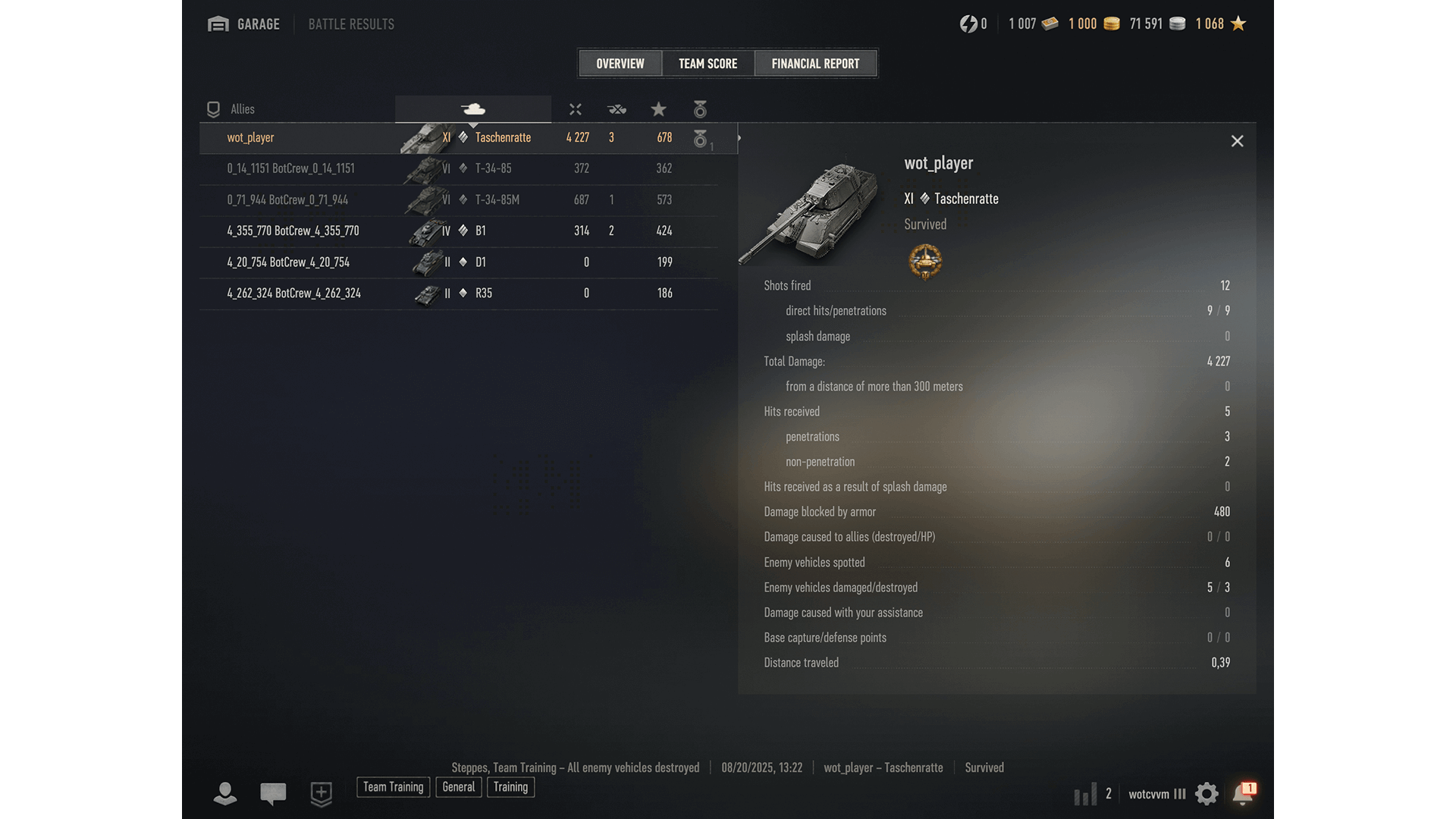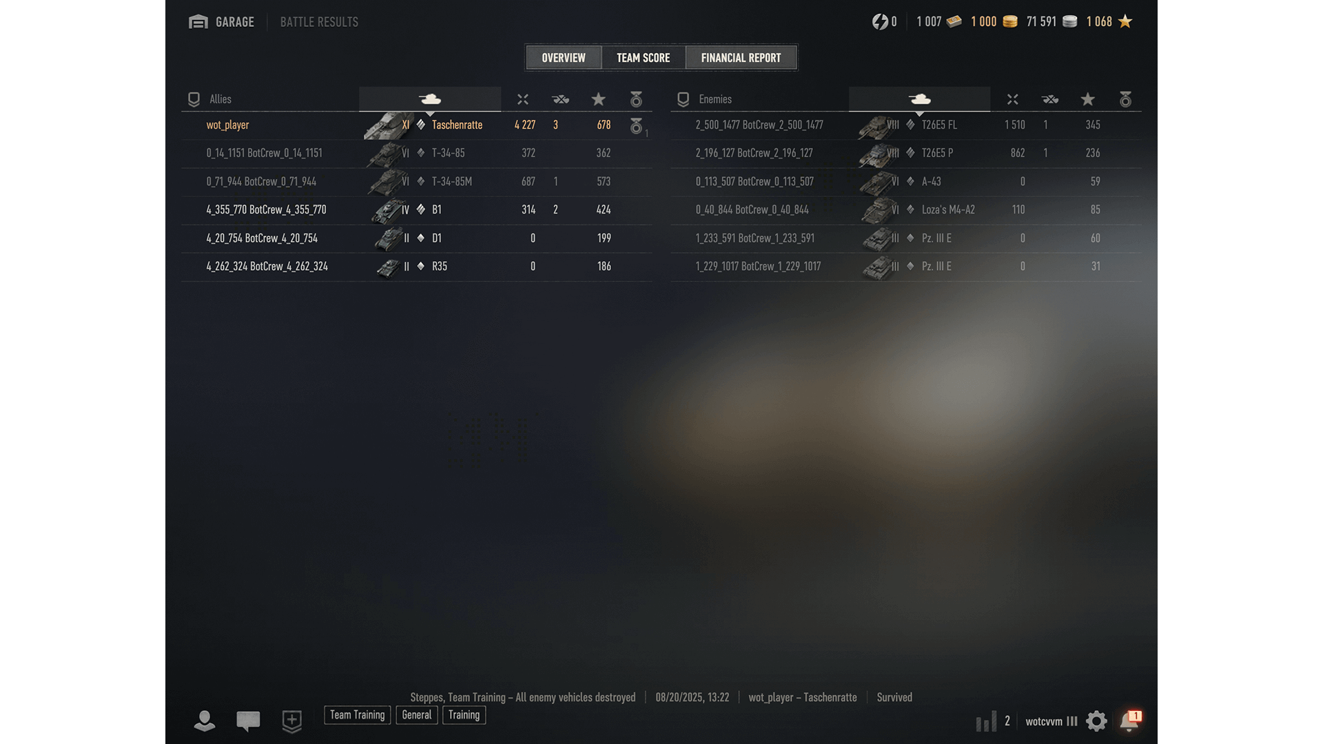 The Battle Results team score screen gives you a clearer look at your teammates and opponents, the tanks they used, and how they performed.