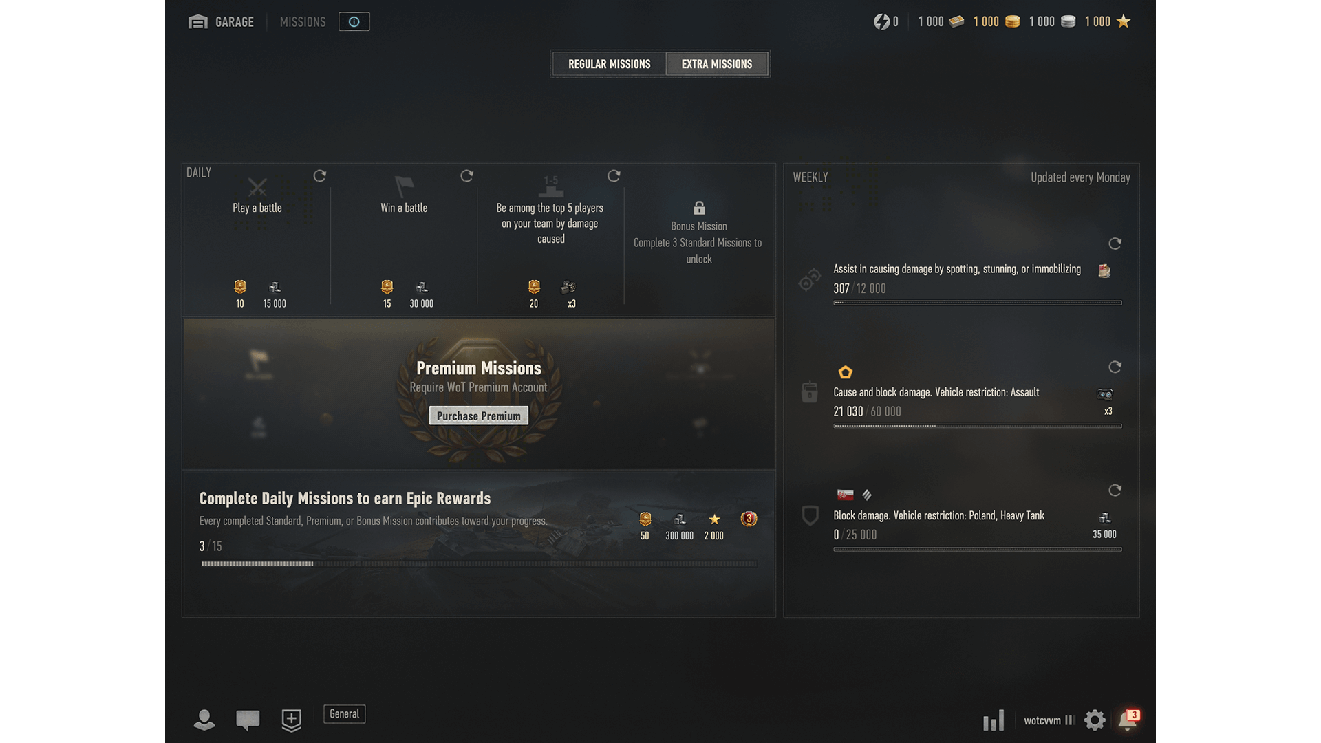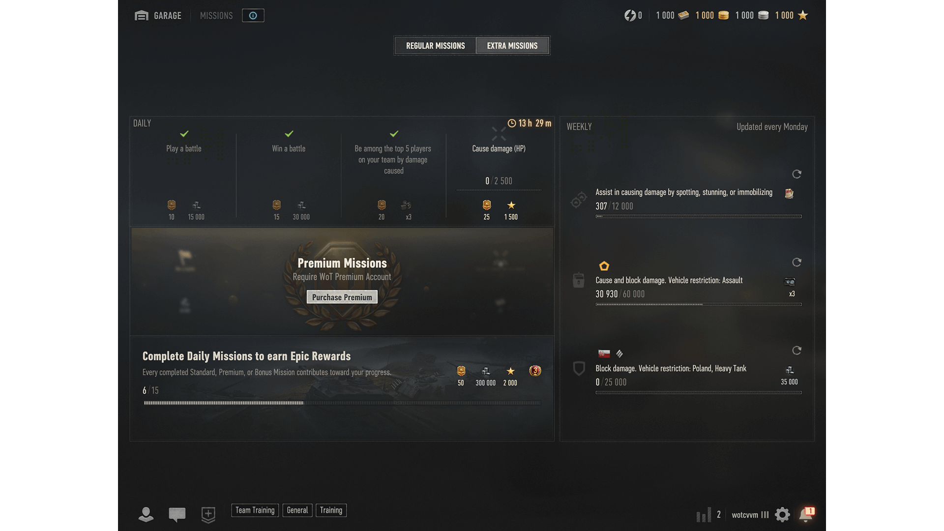 The new Missions screen gives you a clear overview of all your daily and weekly objectives—all in one place. Track your progress at a glance, see what rewards are up for grabs, and plan your battles more effectively.