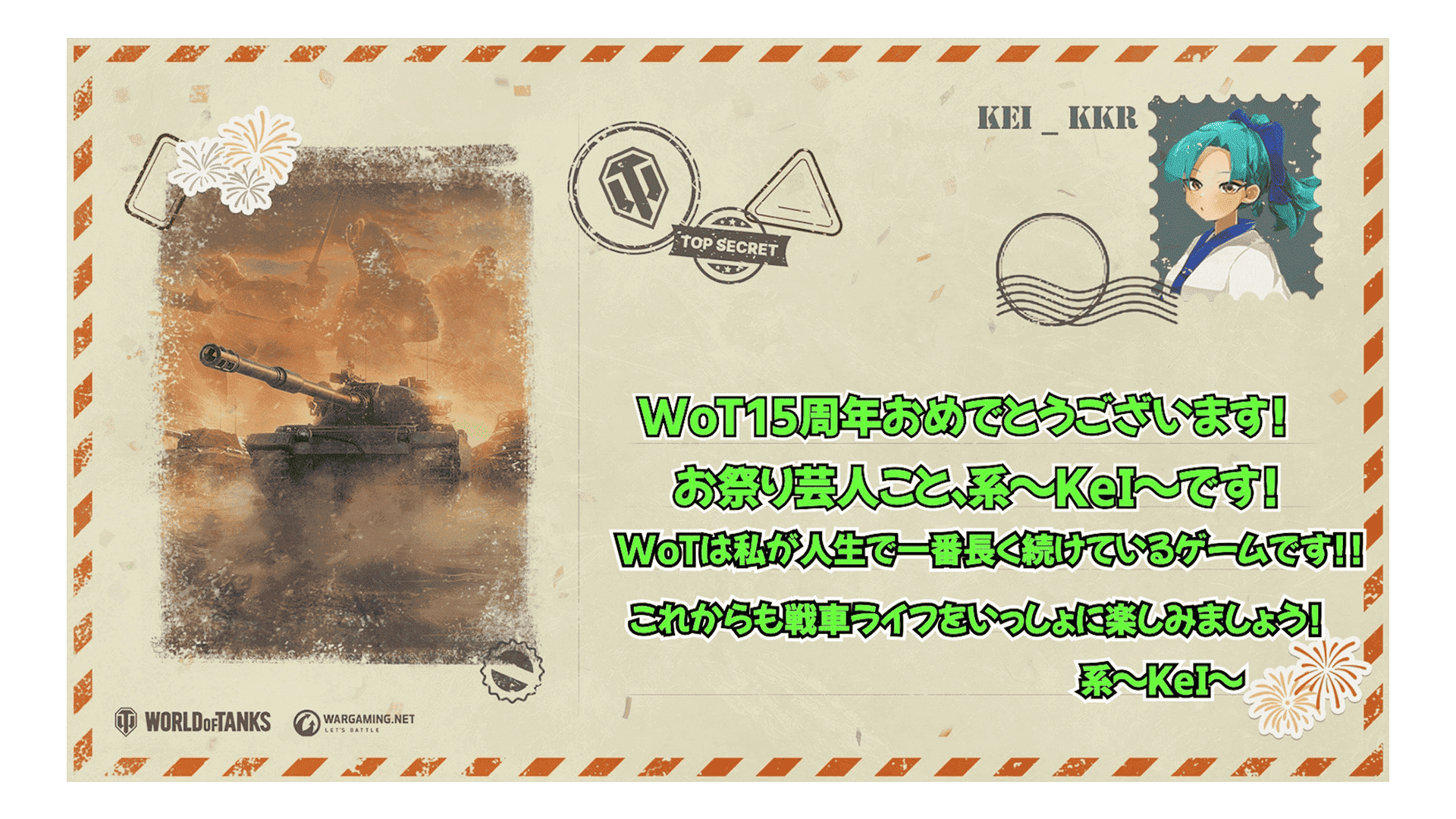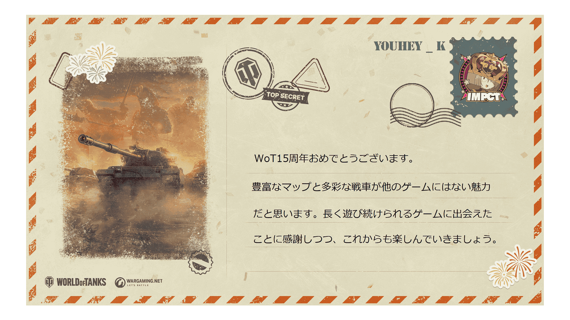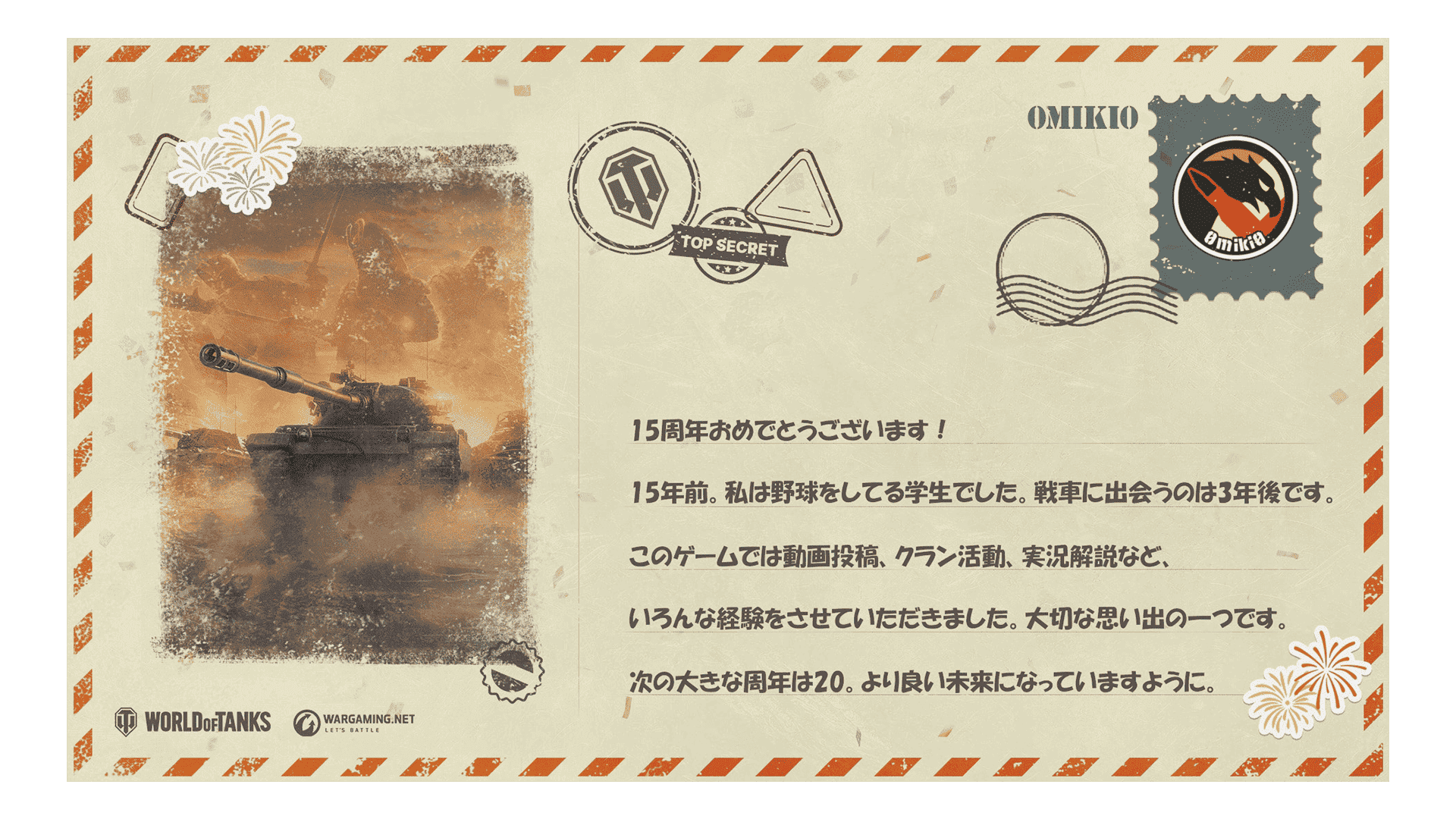これは単なる《バースデー》ではありません。戦車長の皆さんが戦ったすべての戦闘と、支えてきたすべてのチームメイトへの賛辞です。ともに15年間の戦車、チームワーク、そして偉勲を祝いましょう!