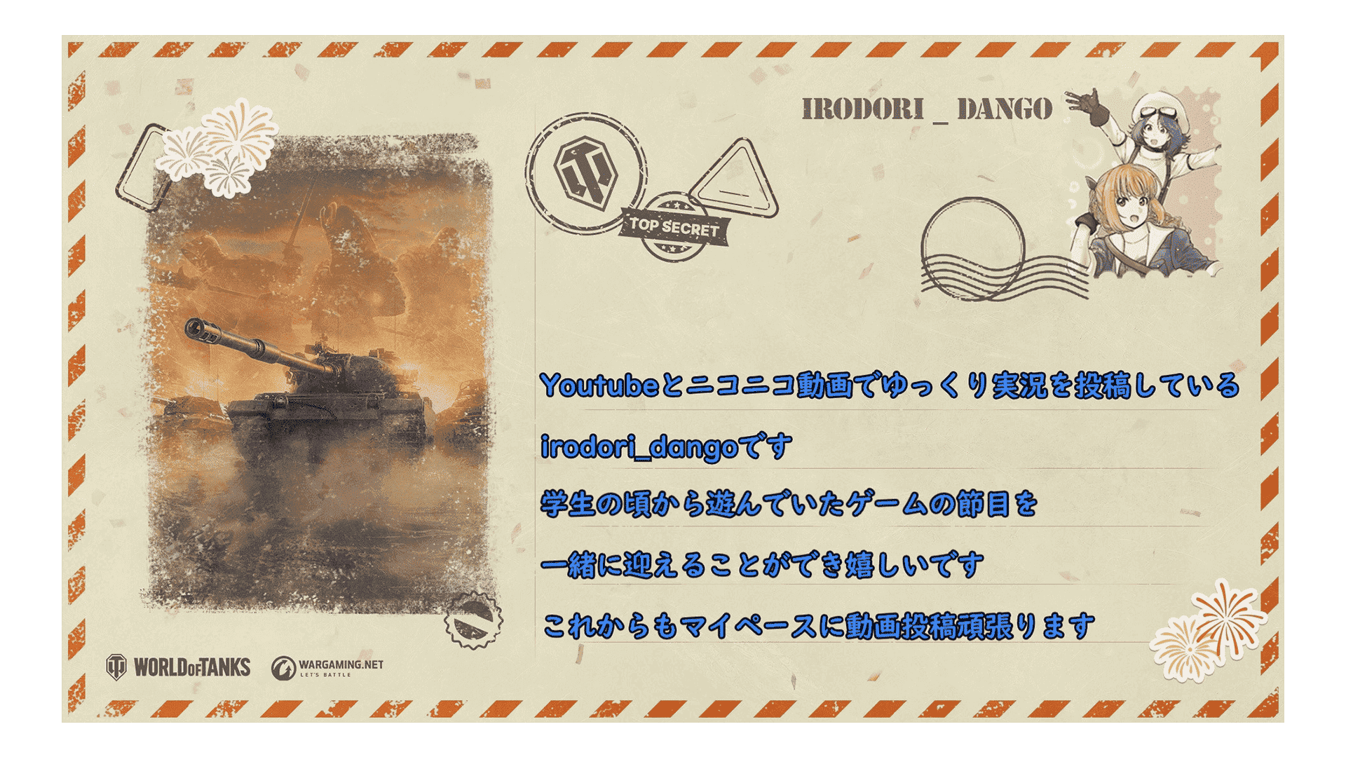 低・中ティアをメインに、皆と楽しく遊ぶ事をモットーに遊んでいるエンジョイ勢です、小隊組んでみたい方、迷っている方、 一緒に楽しく遊びましょういつでも参加のお声掛けください。