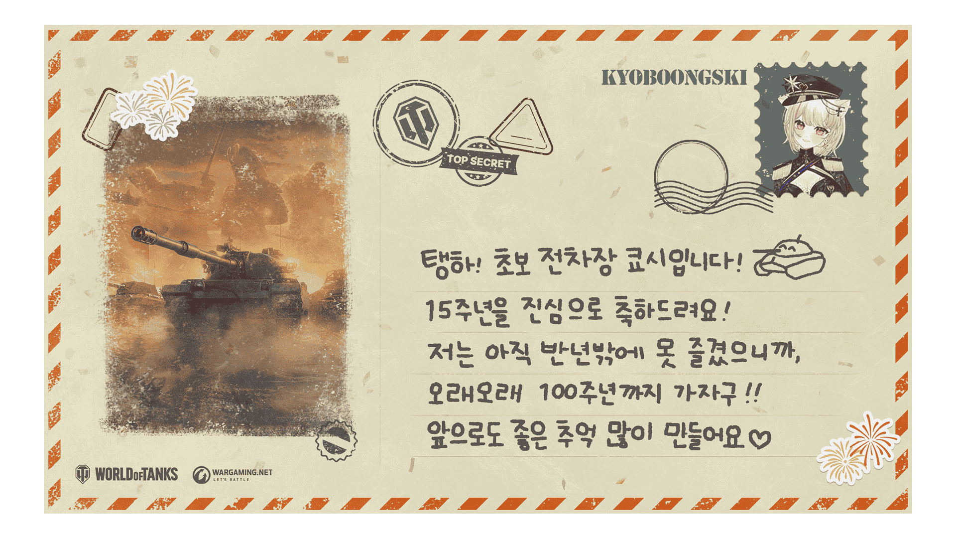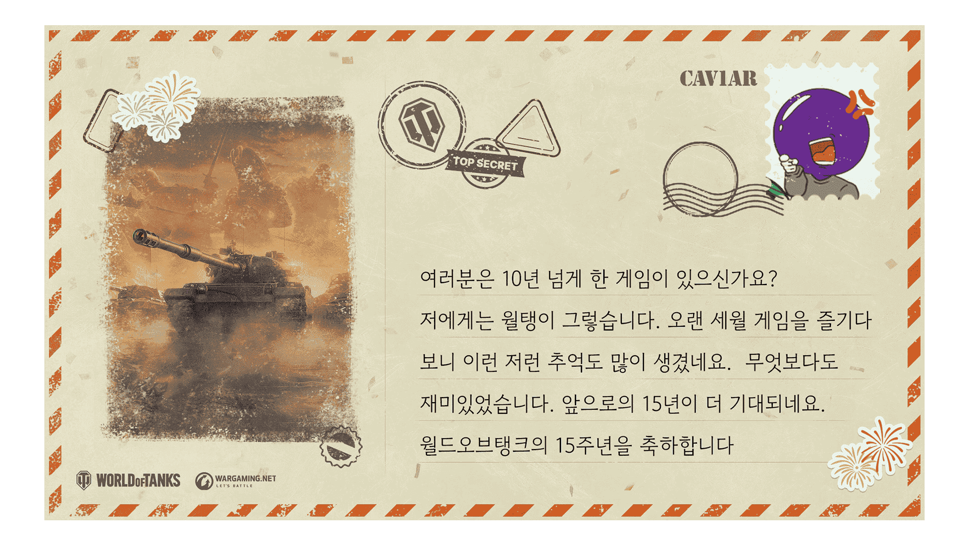 월드 오브 탱크 15주년이 커뮤니티 컨트리뷰터들 각자에게 어떤 의미를 지니는지, 각 커뮤니티 컨트리뷰터들이 월드 오브 탱크 커뮤니티를 향해 보내는 가슴 따뜻한 메시지를 통해 확인해 보십시오!