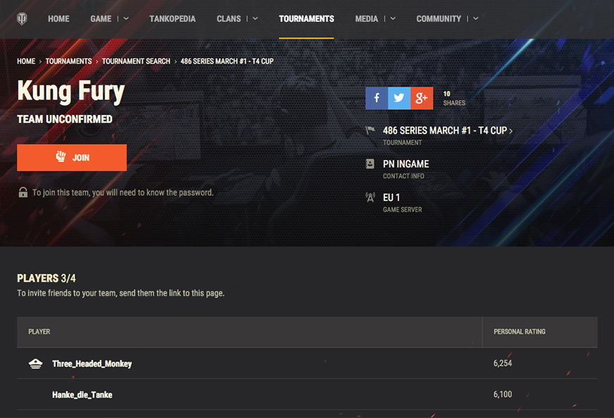 다른 토너먼트에 참여하려면 다른 팀을 결성해야 합니다. 전우와 함께 팀을 결성해 보십시오! 전장에서 행운을 빕니다!