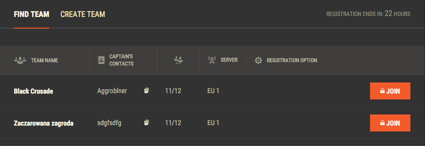 2.1 "팀 검색"을 클릭하십시오. 표시된 창에서 원하는 토너먼트 시작 시간을 설정할 수도 있습니다.